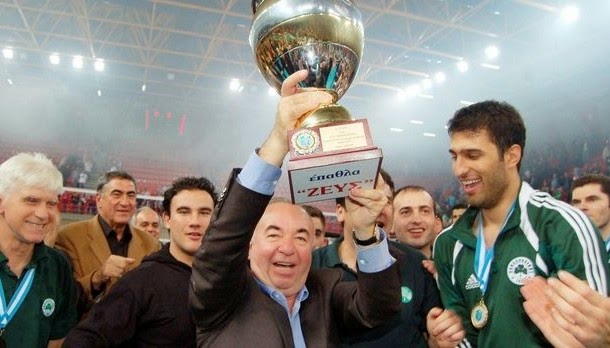 | Αναμνηστική φωτογραφία από τους μεγάλους θριάμβους και τα πρωταθλήματα του Βόλεϊ. Ο μεγάλος Χορηγός Βλάσης Σταθοκωστόπουλος με το τεράστιο έπαθλο στα χέρια του. |