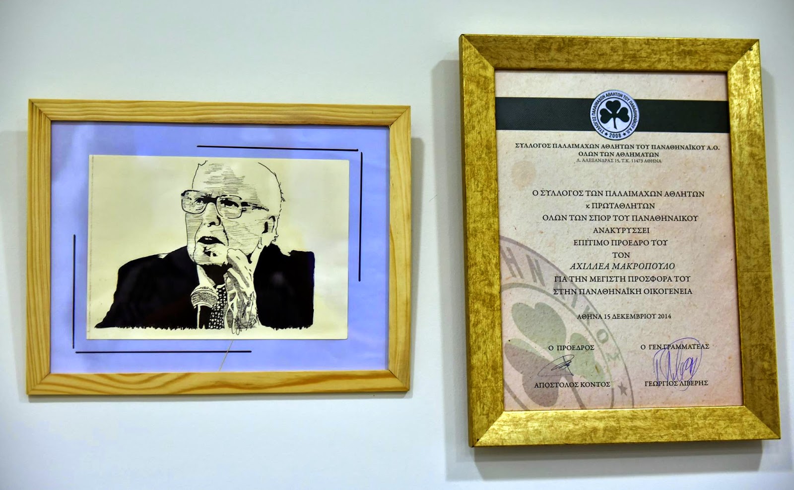 Επίσης ,Τιμής ένεκεν επίτιμος Πρόεδρος των Παλαιμάχων Πρωταθλητών όλων των αθλημάτων του Παναθηναϊκού.Α.Ο