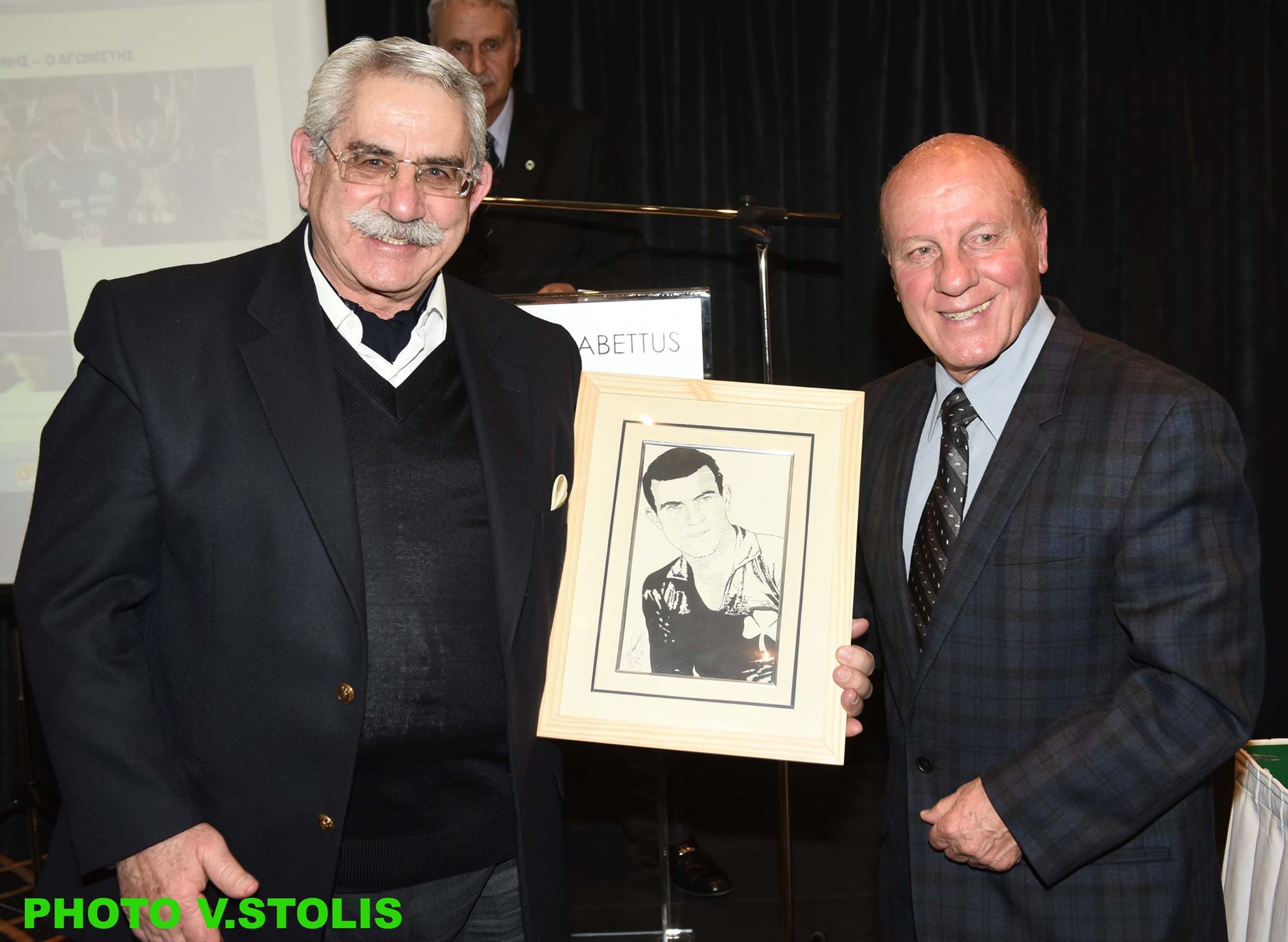 Με τον Απόστολο Κόντο πρόεδρο των Παλαιμάχων Αθλητών, Πρωταθλητών του Π.Α.Ο , ο Αντιπρόεδρος της Ε.ΦΙ.Β.Α 1985 Γιώργος Ψαρρόπουλος,