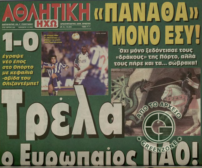 Σαν σήμερα, στις 13 Μαρτίου 2003, ο Παναθηναϊκός κέρδιζε την Πόρτο του Μουρίνιο μέσα στο Ντας Άντας με γκολ του Εμμάνουελ Ολισαντέμπε.